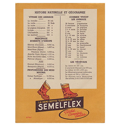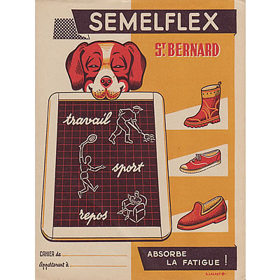靴メーカーSEMELFLEX社の広告プロテージュカイエです。目だったシミ、破れや落書きはなく状態は良い方です。折り返しに、定規のイラストが入っています。ステキなカイエです。