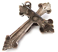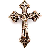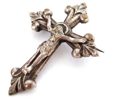フランスの古きよき時代を彷彿させるアンティーククロスをモチーフにした、アンティークブローチです。留め具の箇所はハリを固定できませんので洋服やバッグ等での実用は難しいですが、一時的に軽く付ける程度は可能です。
