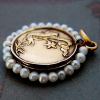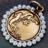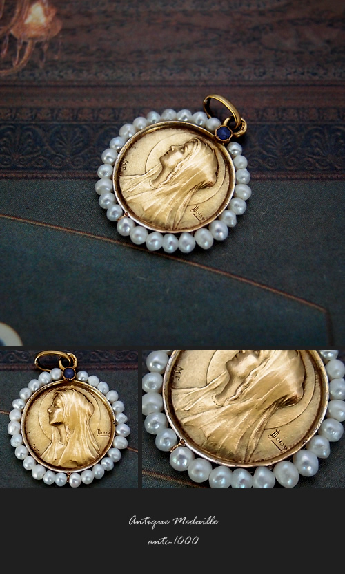 元々のメダイは1900年代初期頃に製作されていましたが、パール部分が全て欠損しており、その修復が近年になされたアンティークメダイです。