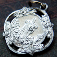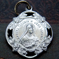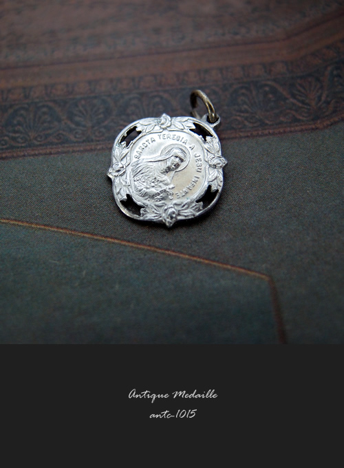 1900年代初期頃に製作された、小さいながらも細部まで繊細なレリーフが施された聖テレジアのアルミ製のアンティークメダイです。
