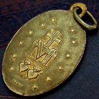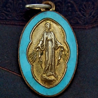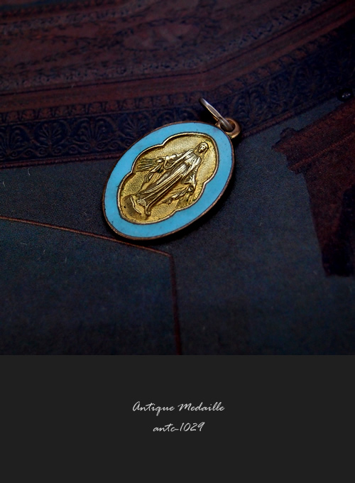 スカイブルーのエマイユがとても印象的な不思議のメダイ(奇跡のメダイ)のアンティークメダイです。