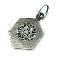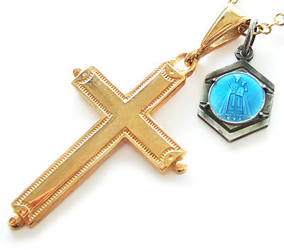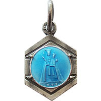 デザインが魅力的なアンティークチャームです。センターのブルーメダイが色鮮やかで素適です。
