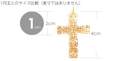 魅力ある模様が特徴的なアンティーククロスチャームです。年代を感じさせない鮮やかなゴールドが魅力的です。