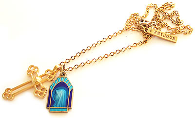 とても色鮮やかな魅力的なアンティークチャームです。ステングラスの様なとてもキレイなデザインのチャームです。ゴールドのクロスとの重ね付けをオススメします♪