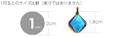 ブルーのコントラストが素適なアンティークチャームです。両面に装飾が施された人気のデザインです。古き良き時代を感じさせるコンディションもアンティークの魅力ですね。