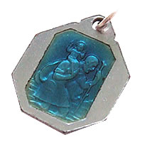 フレームのバラのデザインや、カットがとても美しいアンティークチャームです。表裏のセンターに埋め込まれた色鮮やかななブルーエナメルが魅力的です。