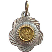 お花の様なデザインのフレームが魅力的なアンティークチャームです。センターに埋め込まれたのゴールドの彫刻がポイント!