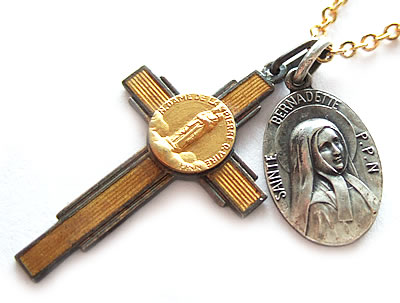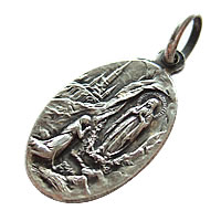 聖地ルルドで有名な、聖ベルナデッタのアンティークメダイです。裏面にはルルドの彫刻も施されています。聖ベルナデッタのアンティークメダイはあまり出回らないので貴重です。