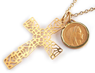 フレームのカッティングがとても美しいアンティークチャームです。裏面には聖地LOURDES(ルルド)の刻印が入っています。