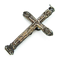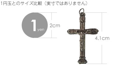 当サイトで扱っているアンティーククロスの中でも最も古い年代の部類に入るアンティーククロスです。一部形状がゆがんでしまっていますが、これもアンティークの醍醐味としてお楽しみください。