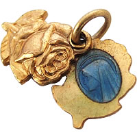 薔薇モチーフがとっても素適なフランスのアンティークチャームです。チャームは左右に開く事ができるタイプで、中にはブルーのエナメルによる彫刻が施されています。