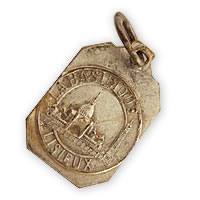 フランスの古き良き時代を感じさせる魅力的なアンティークチャームです。裏面には【LISIEUX】の絵柄と刻印がしっかりと刻まれています。
