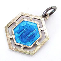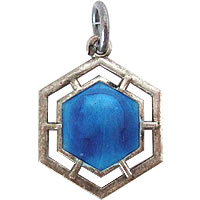 魅力あるアンティークチャームです。フレームのカットが凝っている素敵なチャームです。色鮮やかなブルーがひときわ目に留まります。
