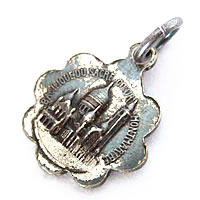 お花の様なデザインのフレームが魅力的なアンティークチャームです。裏面にはモンマルトルのサクレクール寺院が描かれています。