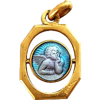 8角のゴールドフレームに囲まれたエンジェルが印象的な、フランスのアンティークチャームです。エンジェルの表情になんとも癒されます♪