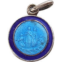 2重のブルーラウンドが特徴的なフランスのアンティークチャームです。とても小さなチャームですが、表裏ともに別の彫刻がキレイに施されています。