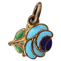 色鮮やかな配色が特徴的な薔薇モチーフのアンティークチャームです。裏面にも薄っすらと彫刻が施されています。