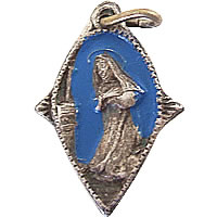 シルバーとブルーのコントラストが印象的なアンティークメダイです。楕円形にクロスを併せたような珍しいデザインです。