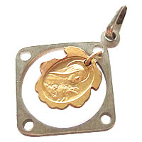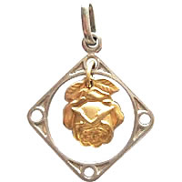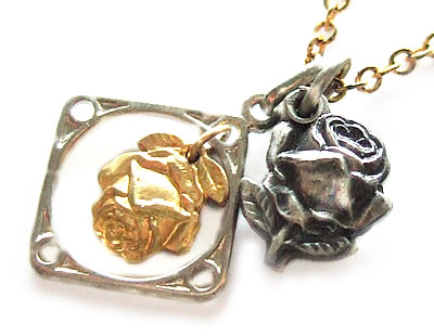 フレームの中をゆらゆらと揺れるゴールドの薔薇がステキなアンティークチャームです。裏面にもデザインがある珍しいタイプです。