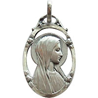 シルバーのフレームがとても丁寧に作りこまれた、状態の良いアンティークシルバーのメダイです。お顔まわりの空間がメダイのデザイン性を引き立てています。
