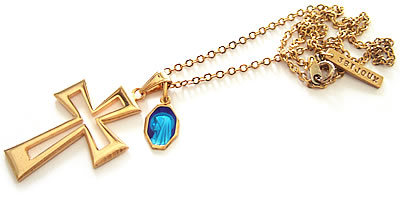 Antique charm 色鮮やかなブルーが魅力的なアンティークチャームです。8角のゴールドフレームも美しく素敵なチャームです。 ◆ チェーン、クロスは、代金に含まれません。 ◆ トロワ・ビジュオリジナルのアンティーク加工チェーンを使用して撮影しています。 >> アンティーク加工チェーンはこちら