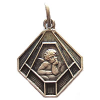 魅力あるアンティークチャームです。フレーム内のカットが凝っている素敵なチャームです。エンジェルが頬杖をついていて、チャーミング!
