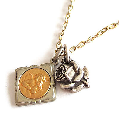 魅力あるアンティークチャームです。フレームのカットが凝っている素敵なチャームです。ゴールドとシルバーのバランスが絶妙です!エンジェルもチャーミング!