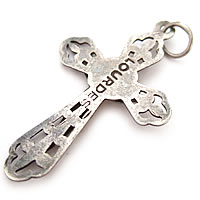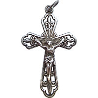 ユリのデザインが印象的なとても美しいシルバーのアンティーククロスです。