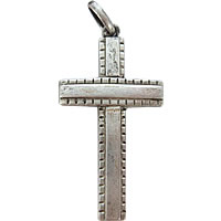 細かく装飾されたシルバーのプレートが交差するようにデザインされたシルバーのアンティーククロスです。