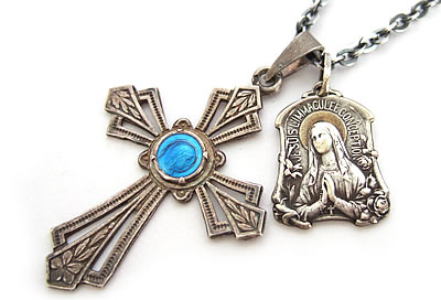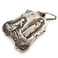 各部の装飾がとても精巧に作りこまれた素適なアンティークチャームです。両面ともに丁寧に施された彫刻が特徴的です。裏面には【LOURDES】の刻印があります。