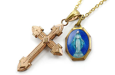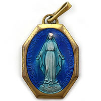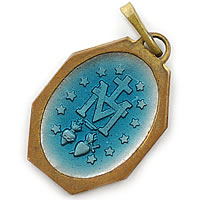 不思議のメダイのアンティークチャームです。現在のデザインと違い、ゴールドの8角フレームにブルーのエナメルとなっています。