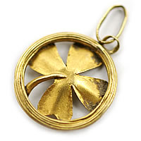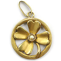 四つ葉のクローバーをモチーフにしたアンティークチャームです。真ん中にはパールビーズが埋め込まれています。