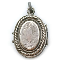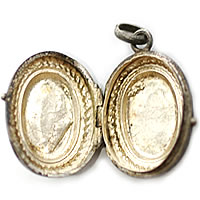 シンプルなロケットペンダントのアンティークチャームです。大切な人の写真等を入れてみられてはいかがでしょうか?