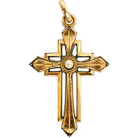 中心部のパールビーズが素適なアンティーククロスです。アンティークならではのメッキの剥げ具合が古きよき時代を彷彿させます。