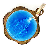 お花のようなフレームが印象的なアンティークチャームです。裏には【LISIEUX】の刻印がありますが、上のエナメルが若干欠けています。