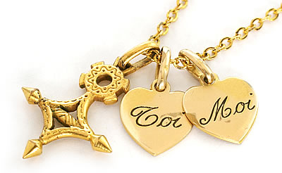 【Toi/あなた】と【Moi/わたし】と刻まれたゴールドのハート型アンティークチャームセットです。表面に若干のヨゴレがあります。