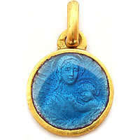 ブルーのエナメルに描かれたベビーを抱く姿がとても微笑ましいゴールドのアンティークチャームです。