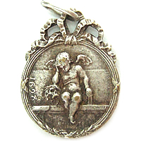 全身のエンジェルが描かれたとても珍しいアンティークチャームです。年代もとても古く、アンティークならではの質感が所々に感じられます。