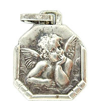頬づえをつくエンジェルが微笑ましいアンティークチャームです。ゴールドタイプはよく見かけますが、シルバータイプは貴重な1点です。