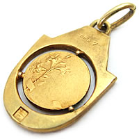 さりげなく花をあしらったフレームがとっても素適なゴールドのアンティークチャームです。