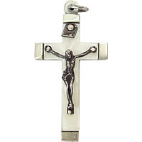 ホワイトシェルとシルバーが清楚なイメージのアンティーククロスです。裏面には【Lourdes】の刻印があります。