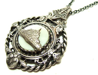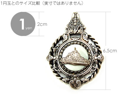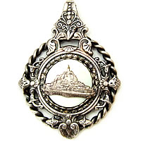 中央のシェル部分に「モン・サン・ミッッシェル」が描かれたゴージャスなアンティークチャームです。フレームの装飾もとても素適です♪