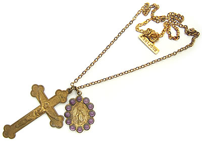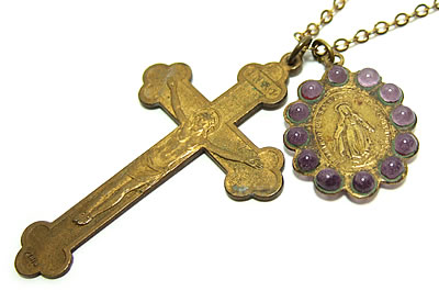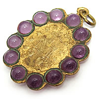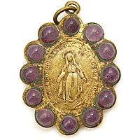不思議のメダイの周りに12個のビーズが埋め込まれた素適なアンティークチャームです。とても古いチャームの為、アンティークならではの質感が随所に感じられます。