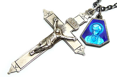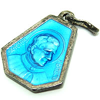 濃淡のブルーのコントラストが素適なアンティークチャームです。裏面に【SANCTUS/J.BOSCO】と刻印があります。