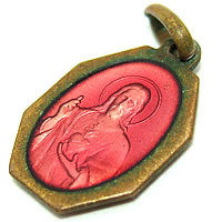 渋い真鍮のフレームに赤いエナメルが印象的なアンティークチャームです。
