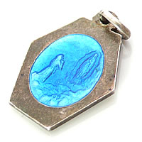 シルバー製の6角フレームとブルーのエナメルとのコントラストが素適なアンティークチャームです。