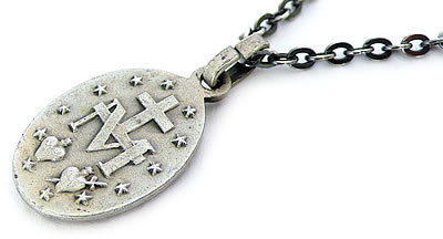 不思議のメダイのアンティークチャームです。現行のタイプとほぼ同じ大きさですが、つや消しのデザインとなっています。Cカンの部分に薄っすらと【FRANCE】の刻印があります。