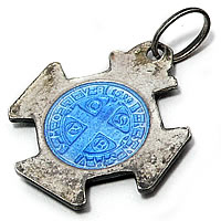 一見メダイのようなデザインのアンティーククロスです。ブルーのエナメルとシルバーとのコントラストがとても奇麗です。