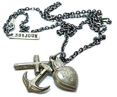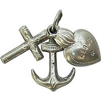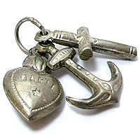 小さなハートとイカリとクロスの3つのチャームが連なった、とっても可愛いアンティークチャームです。