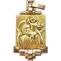とても丁寧に描かれたデザインがとても素敵なゴールドのアンティークチャームです。描かれているのは、旅や海の聖人で、サーファーや旅のお守りとしても人気のある聖クリストファーです。